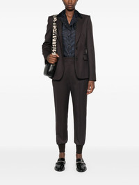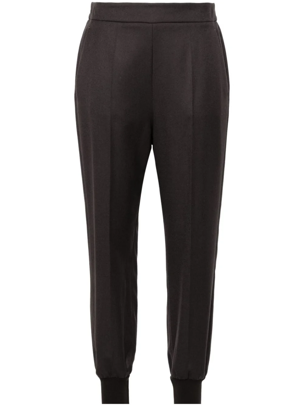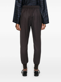 wool tapered trousers Highlights - Anthracite grey - Wool - Textured finish - Two side slash pockets - Pressed crease - Rear elasticated waistband - Ribbed ankles - Tapered leg Imported Composition Wool 100%, Cotton 98%, Spandex/Elastane 1%, Polyamide 1% SIZE & FIT Model measurements Height 5 ft 10 in(1.78 m) Bust/Chest 31.49 in(80 cm) Hips 37 in(94 cm) Waist 23.62 in(60 cm) FittingInformation Designed for a relaxed tapered cut, these trousers allow for a close fit at the waist and offer a loose fit at the thighs, with a closer fit toward the ankles The zipped hems allow you to adjust the fit throughout the calves and ankles Made from a midweight fabric This piece fits true to size – take your usual size