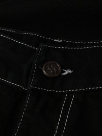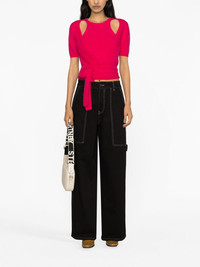 contrasting stitching wide-leg jeans Contrasting white stitching adds depth to the all-black design of these mid-rise jeans, made in Italy from a durable blend of sustainable cotton. The pair is cut to a utilitarian-inspired wide leg whilst boasting a logo patch at the rear. Highlights - Black/white - Cotton blend - Mid-rise - Front button and zip fastening - Belt loops - Two side slit pockets - Contrast stitching - Wide leg Made in Italy Composition Outer: Cotton 100% Lining: Polyester 57%, Cotton 40%, Elastane 3% SIZE & FIT Model measurements Height 5 ft 10 in(1.78 m) Bust/Chest 31.49 in(80 cm) Hips 35.03 in(89 cm) Waist 23.62 in(60 cm) Measurement FRONT RISE 12.2 in(31 cm) INSIDE LEG 32.67 in(83 cm) HIPS 38.58 in(98 cm)