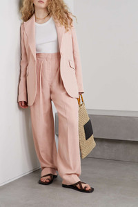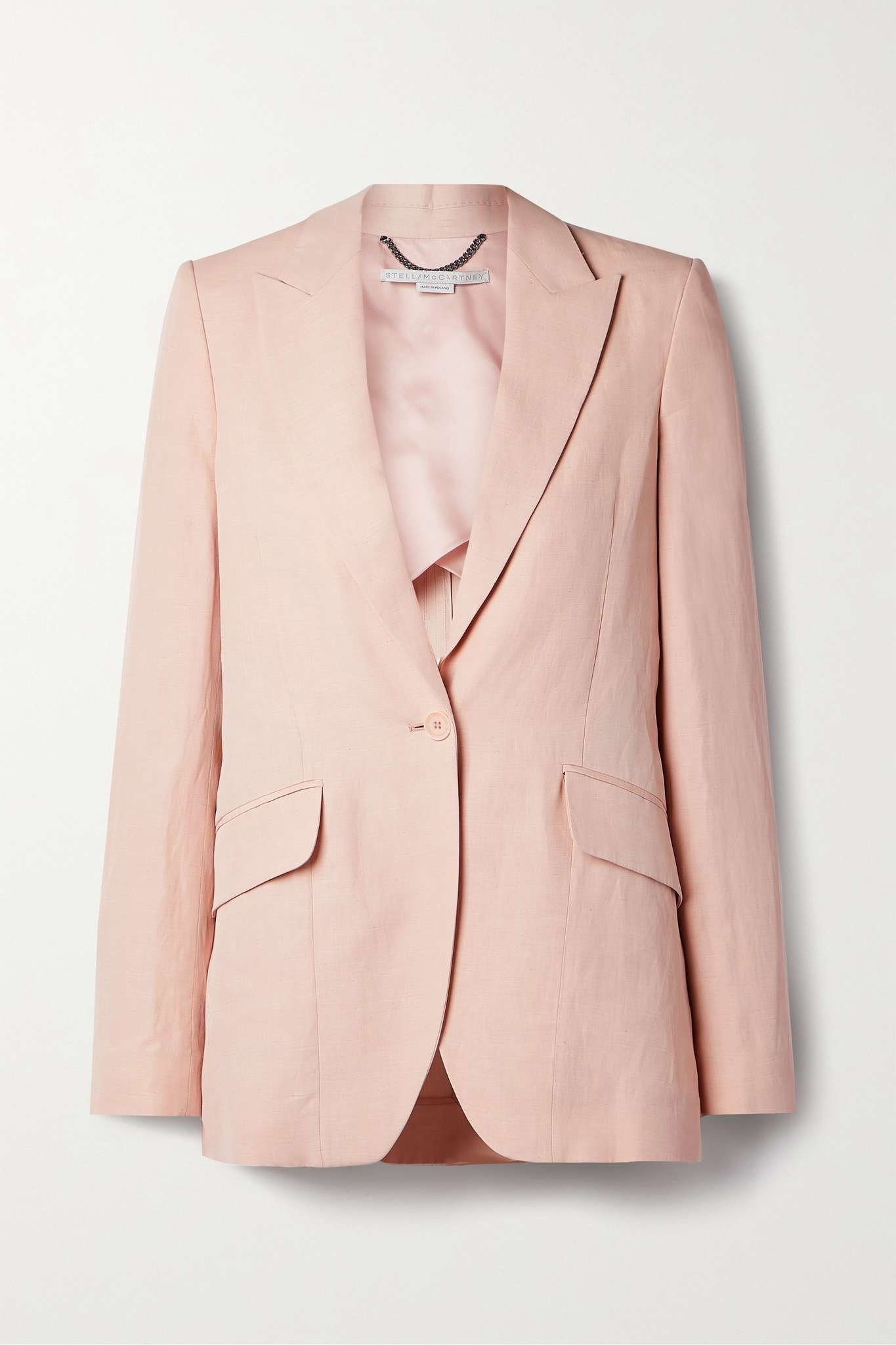EDITORS'NOTES Stella McCartney's woven blazer is designed in a soft 'Rose' shade that's such a pretty alternative to neutral tailoring. It's cut with sharp peak lapels that add structure to the relaxed silhouette and woven with touches of linen for a slouchy feel. The unlined construction makes it particularly lightweight - perfect for summer events. SIZE & FIT - Fits true to size, take your normal size - Designed for a relaxed fit - Lightweight, non-stretchy fabric - Model is 175cm/ 5'9" and is wearing an IT 44 DETAILS & CARE - Pink viscose and linen-blend - Button fastening at front - 72% viscose, 28% linen - Dry clean - Designer color: Rose