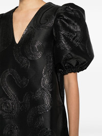 Brethel swirl-jacquard minidress Highlights - Black - Recycled polyester - Patterned swirl jacquard - V-neck - Short puff sleeves - A-line - Logo-jacquard lining - Thigh-length - Straight hem Imported Composition Lining: Recycled Polyester 100% Recycled Polyester 51%, Polyester 32%, Metallic Fibre 14%, Elastane 3% SIZE & FIT Model measurements Height 5 ft 10 in(1.77 m) Bust/Chest 31.49 in(80 cm) Hips 35.43 in(90 cm) Waist 25.19 in(64 cm) FittingInformation Designed to be unstructured, offering a loose fit throughout Made from a midweight stretch fabric, this piece offers elasticity and flexibility when worn This piece fits true to size – if you would prefer a closer fit, take one size down Washing instructions Dry Clean Only