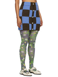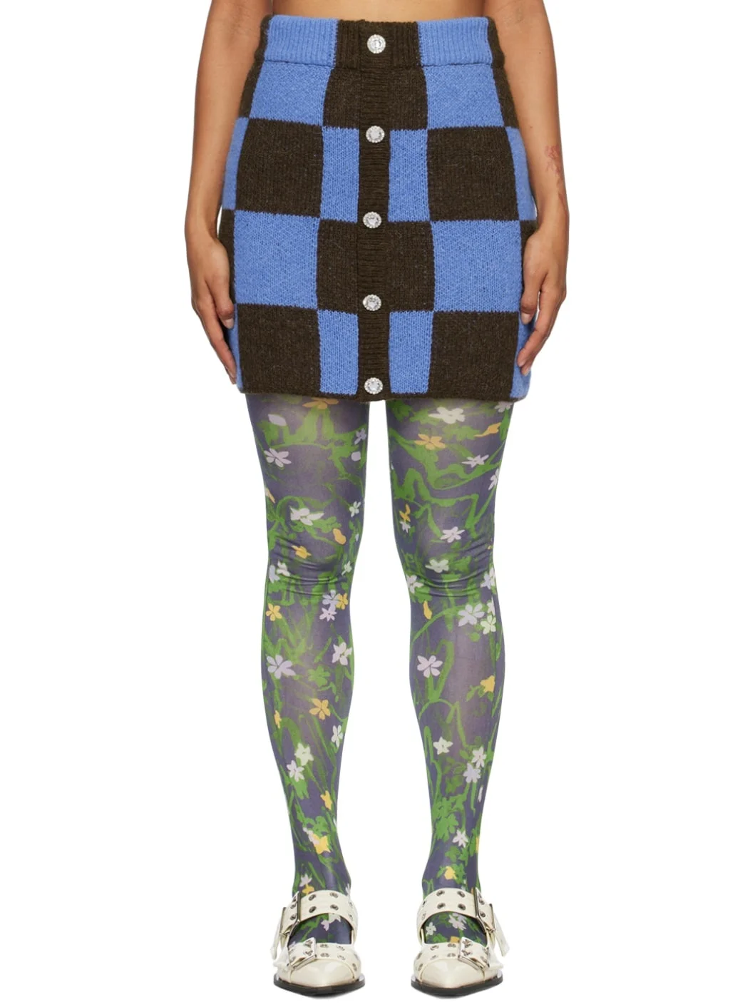 Acrylic- and alpaca-blend knit skirt. Check pattern throughout. · High-rise · Rib knit waistband · Mock button closure · Crystal-cut hardware Supplier color: Ocean check 45% acrylic, 35% polyamide, 20% alpaca. Made in Italy 231905F090004