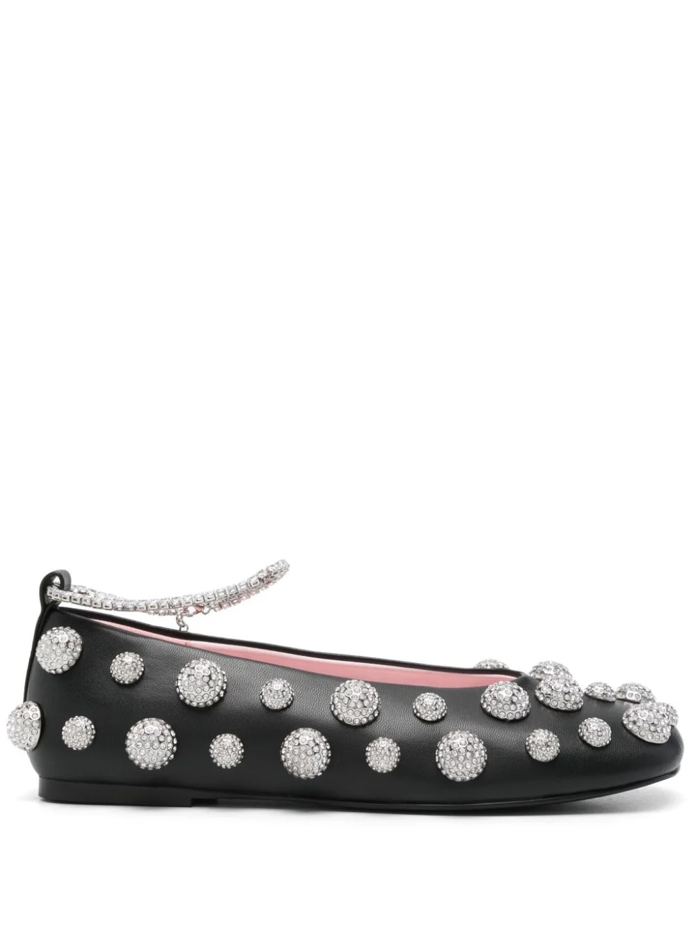 crystal-embellished ballerina shoes Highlights - Black - Ankle strap - Branded insole - Flat rubber sole - Almond toe Imported Composition Other fibres 100%