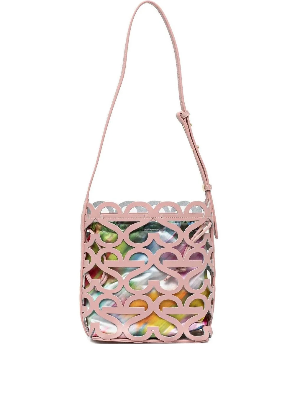 cut-out bucket bag Highlights Imported Composition Lining: Polyester 100% Outer: Leather 100% SIZE & FIT Measurement DEPTH 4.33 in(11 cm) HEIGHT 8.66 in(22 cm) WIDTH 7.08 in(18 cm)