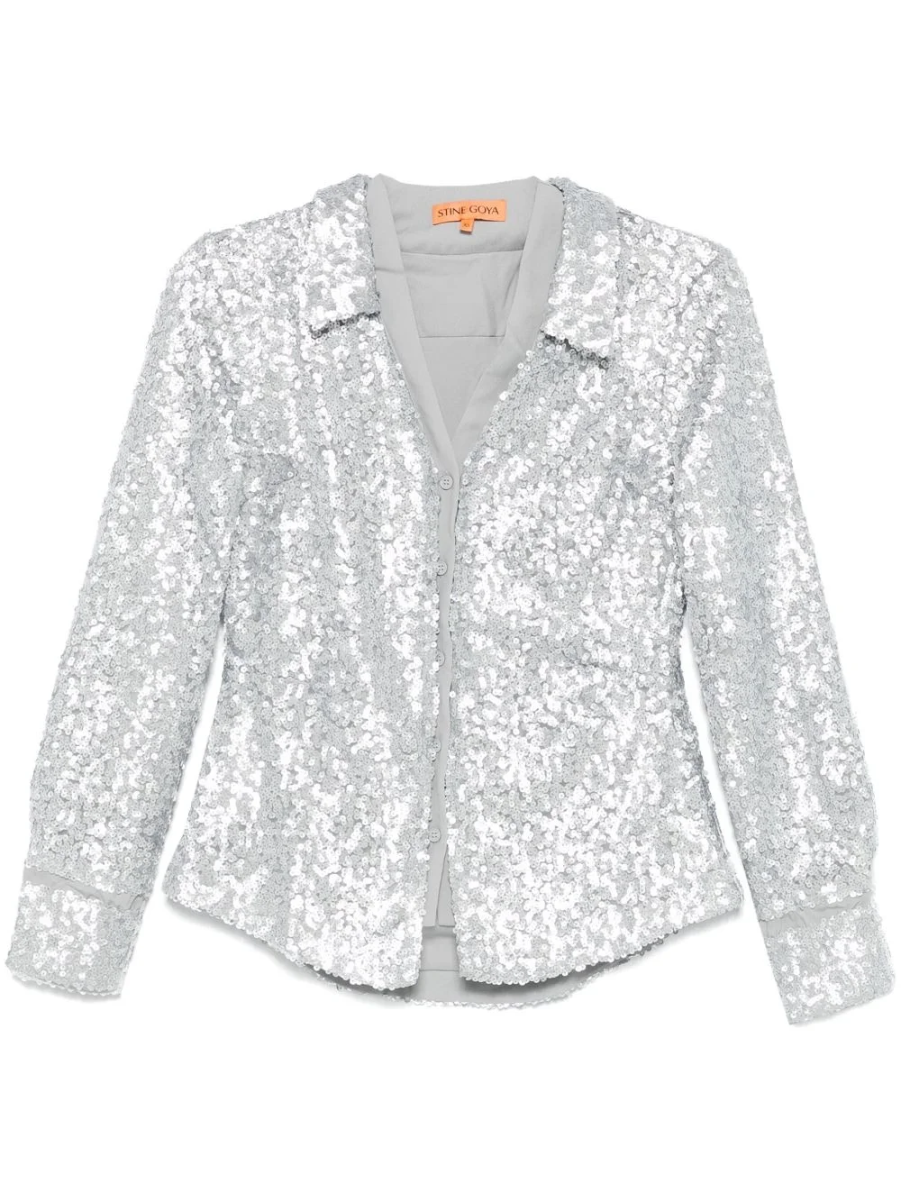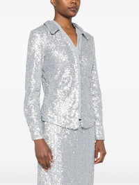 double collar shirt Highlights - Silver-tone - Recycled polyester blend - Sequin embellishment - Double collar - Front button fastening - Long sleeves - Buttoned cuffs - Curved hem Imported Composition Outer: Recycled Polyester 95%, Polyester 5% Lining: Polyester 100% SIZE & FIT Model measurements Height 5 ft 11 in(1.8 m) Bust/Chest 31.49 in(80 cm) Hips 36.61 in(93 cm) Waist 24.4 in(62 cm) FittingInformation Designed for a slim fit that sits just away from the body offering a close yet comfortable fit Made from a midweight non-stretch fabric