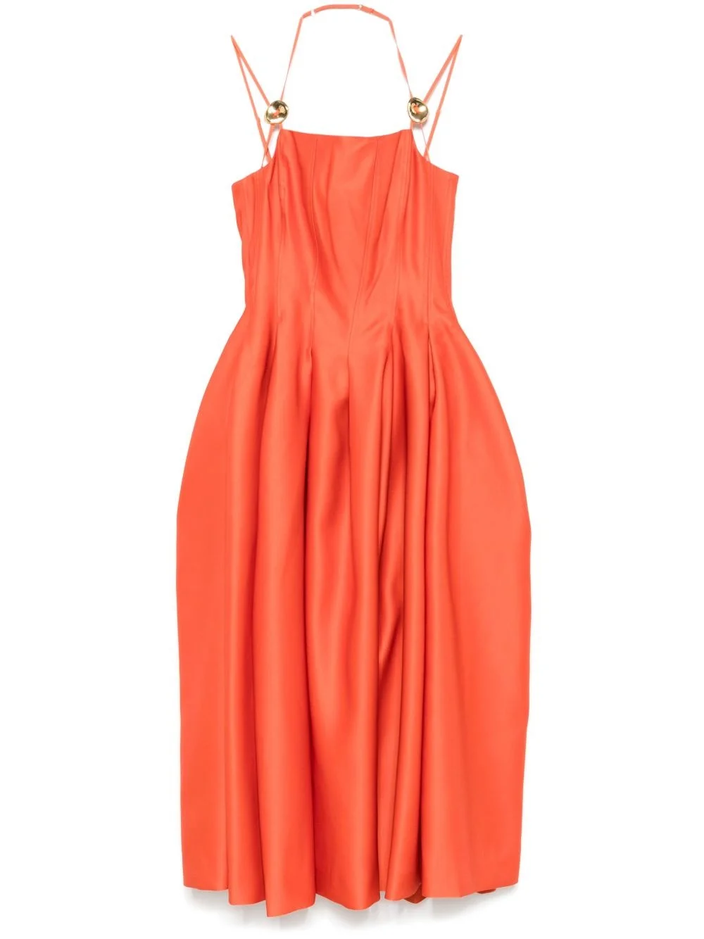 double-strap midi dress Highlights - Burnt orange - Concealed rear hook and zip fastening - Boned bodice - Two adjustable shoulder straps - Two side inset pockets Imported Composition Outer: Polyester 100% Lining: Polyester 100% SIZE & FIT Model measurements Height 5 ft 10 in(1.78 m) Bust/Chest 33.46 in(85 cm) Hips 36.22 in(92 cm) Waist 23.22 in(59 cm) FittingInformation Designed for a close fit at the chest and waist with a loose fit at the hip The adjustable shoulder straps allow for a preferred fit when worn Made from a midweight non-stretch fabric