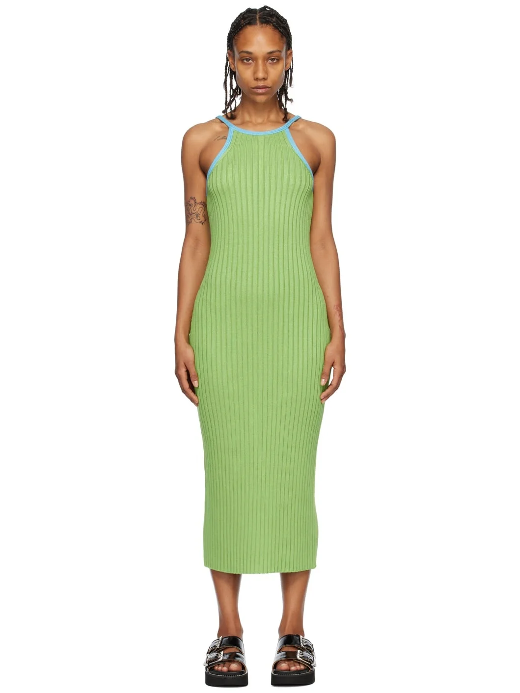 Rib knit viscose-blend dress. · Round neck · Fixed spaghetti straps · Low back Supplier color: Kelly green 74% viscose, 26% polyamide. Made in Italy 231905F055003
