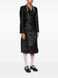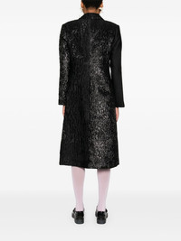 long-sleeves straight coat Highlights - Black - Double-breasted button fastening - Two side inset pockets Imported Composition Outer: Recycled Polyester 66%, Metallised Fibres 21%, Polyamide 13% Lining: Recycled Polyester 100% SIZE & FIT Model measurements Height 5 ft 11 in(1.8 m) Bust/Chest 32.67 in(83 cm) Hips 35.03 in(89 cm) Waist 25.19 in(64 cm) FittingInformation Designed for a slim fit that sits just away from the body offering a close yet comfortable fit The internal shoulder pads offer a structured shape Made from a lightweight non-stretch fabric