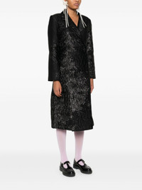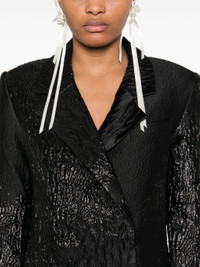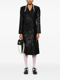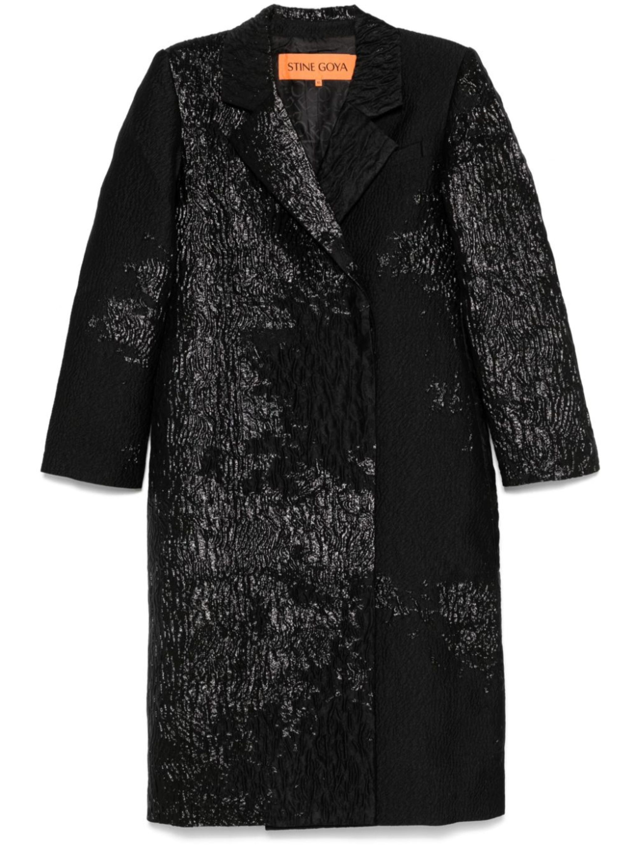 black double-breasted button fastening two side inset pockets Size & Fit Model Measurements: Height: 1.8 m Bust/Chest: 83.0 cm Hips: 89.0 cm Waist: 64.0 cm Model wears size XS Fabric and Care Designer Style ID: SGC015 Designer Colour: 2269 BLACK IMPRESSIONI HUE Composition: Outer: Polyamide 13%, Recycled polyester 66%, Metallic fibre 21%; Lining: Recycled polyester 100% Washing instructions: Dry Clean Only
