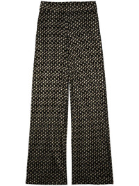 Magic logo-print high-rise trousers Highlights - Black/brown - All-over logo print - Straight leg - Long length - High-rise - Elasticated waistband - Straight hem Imported Composition Viscose 63%, Acrylic 22%, Polyimide 15% Washing instructions Machine Wash