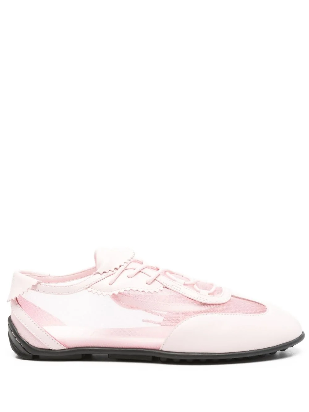 lace-up mesh sneakers Highlights - Light pink - Mesh panel - Lace-up fastening - Flat sole Imported Composition Outer: Nylon 80%, Calf Leather 20% Sole: Rubber 100% Lining: Calf Leather 100%