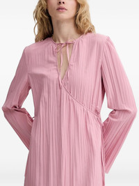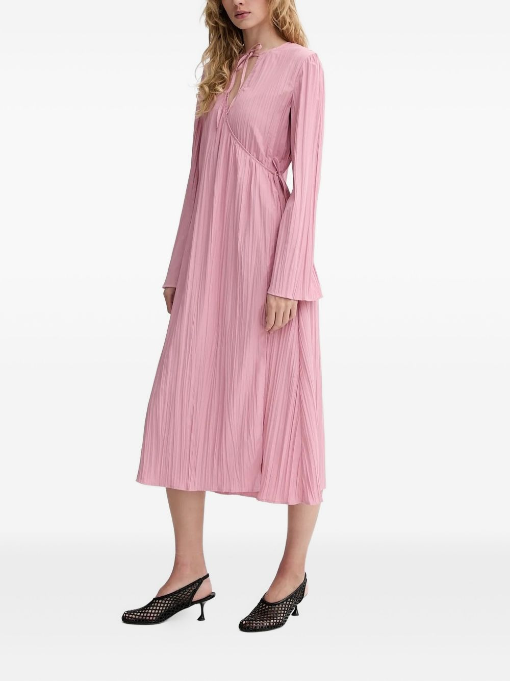 pleated tie-neck midi dress Highlights - Pink - Pleated texture - Tie neck - Long sleeves - Wrap design - Midi length Imported Composition Recycled Polyester 100% Washing instructions Read Manufacturer Guidelines