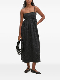 rose-embellished midi dress Highlights - Black - Rose motif - Empire waist - Spaghetti straps - A-line skirt - Textured fabric - Rear cut-out detail Imported Composition Outer: Recycled Polyester 95%, Polyester 5% Lining: Polyester 100% Washing instructions Read Manufacturer Guidelines