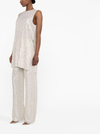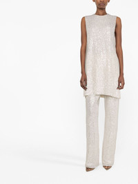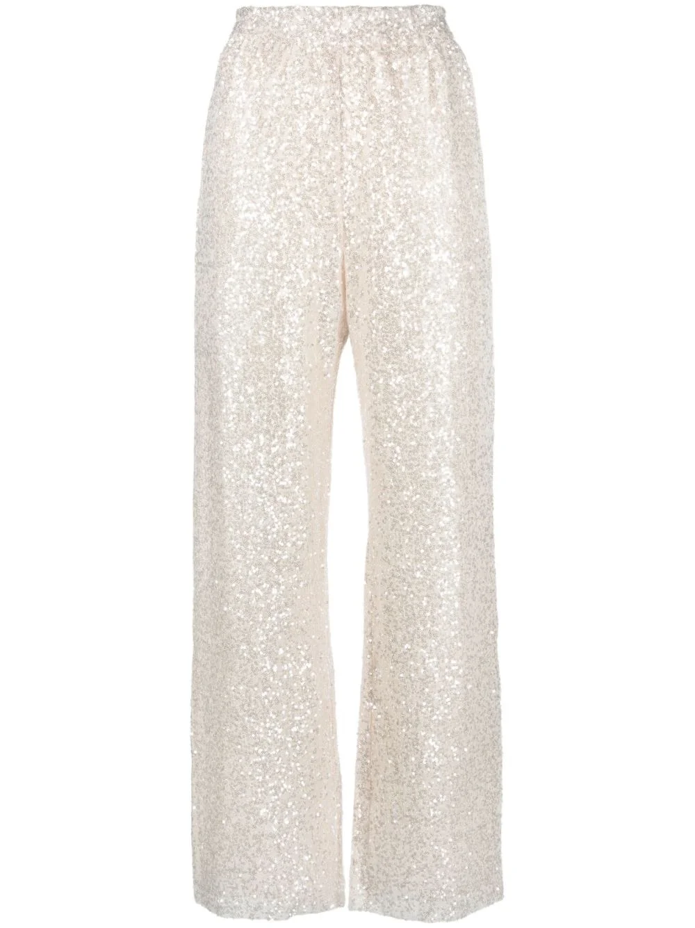 sequin-embellished pant Highlights - White - Recycled polyamide blend - Sequin embellishment - Wide leg - Elasticated waistband Imported Composition Outer: Recycled Polyester 65%, Polyester 35% Lining: Polyester 100% SIZE & FIT Model measurements Height 5 ft 10 in(1.77 m) Bust/Chest 31.49 in(80 cm) Hips 33.85 in(86 cm) Waist 22.44 in(57 cm) Washing instructions Dry Clean Only