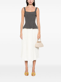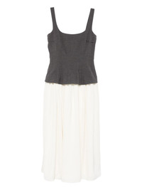 square-neck midi dress Highlights - Grey and cream - Square neck - Sleeveless - Pleated skirt - Gathered detail Imported Composition Outer: Polyester 100% Lining: Recycled Polyester 100% SIZE & FIT Model measurements Height 5 ft 10 in(1.78 m) Bust/Chest 33.46 in(85 cm) Hips 36.22 in(92 cm) Waist 23.22 in(59 cm) Washing instructions Dry Clean Only