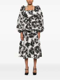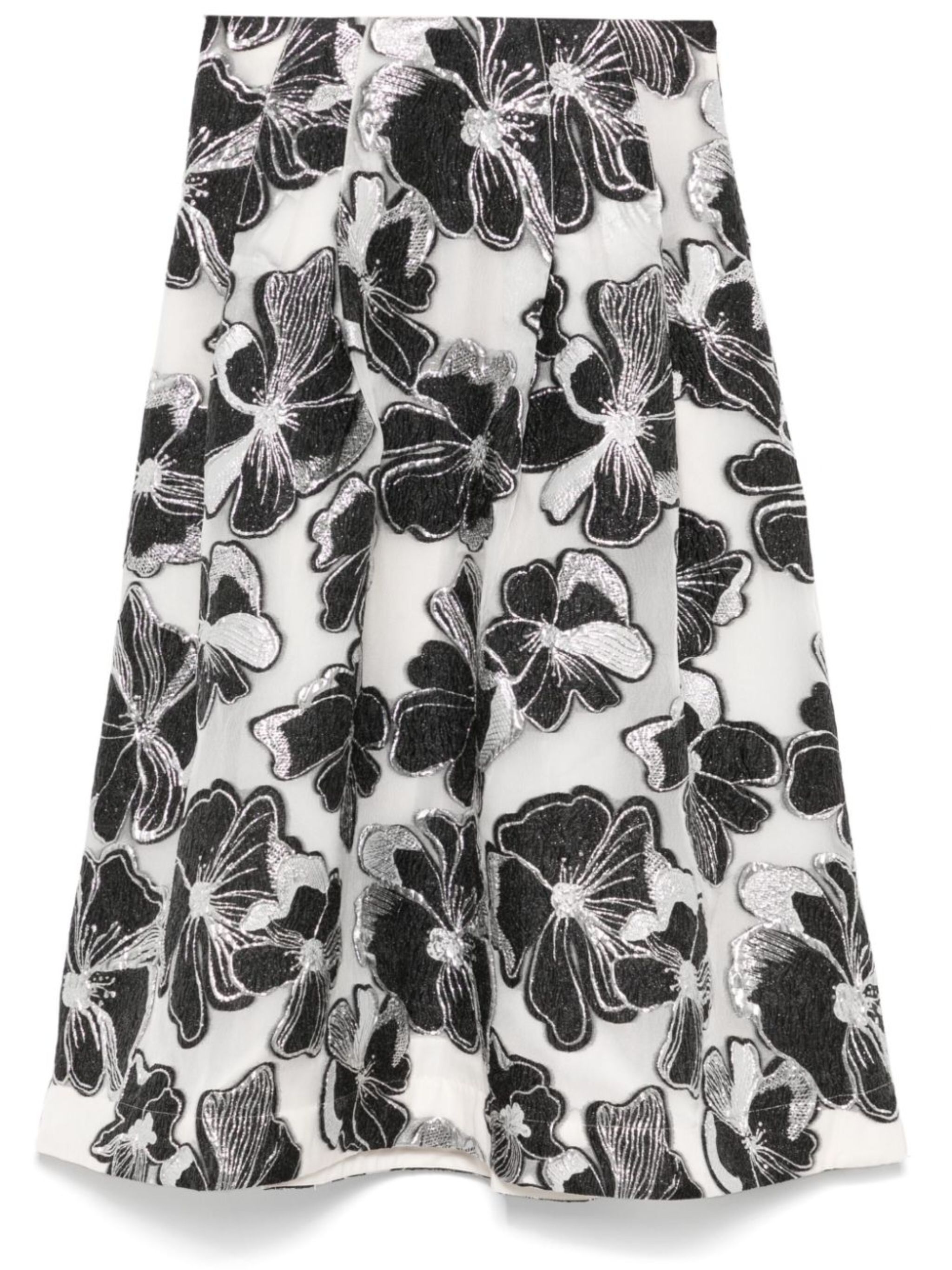 white concealed side hook and zip fastening full lining Size & Fit Model Measurements: Height: 1.8 m Bust/Chest: 83.0 cm Hips: 89.0 cm Waist: 64.0 cm Model wears size XS Fabric and Care Designer Style ID: SGSK005 Designer Colour: 1608 ANEMONE JACQUARD WHITE BLACK Composition: Outer: Polyamide 21%, Metallic fibre 19%, Recycled polyester 45%, Viscose 15%; Lining: Polyester 30%, Recycled polyester 70% Washing instructions: Machine Wash