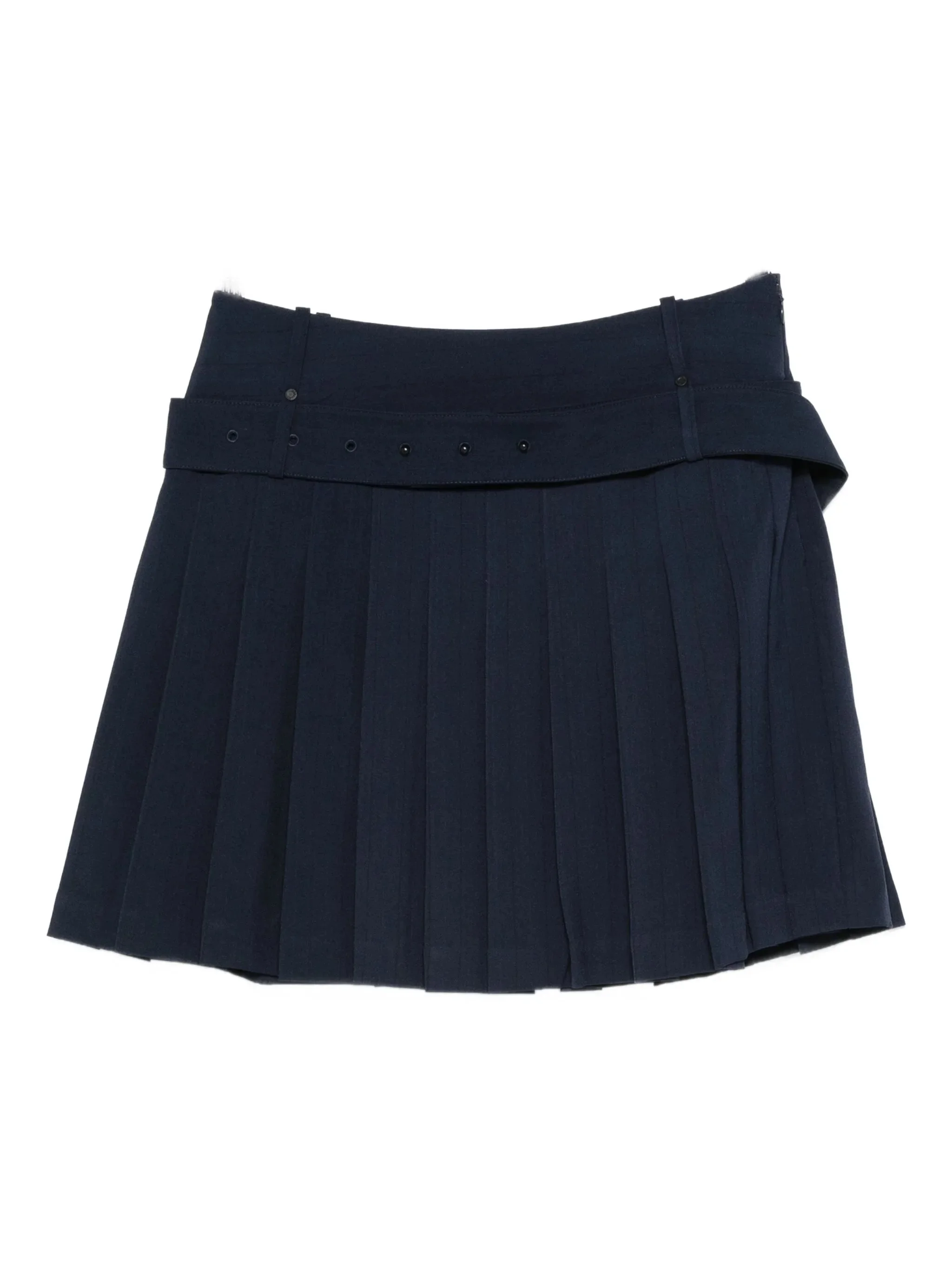dark blue belted waist buckle fastening pleated thigh length belt loops - Color: BLUE - Made in: Bangladesh - Designer Style ID: SGSK019 2435 DABLU Composition and care Fabric: 100.0%