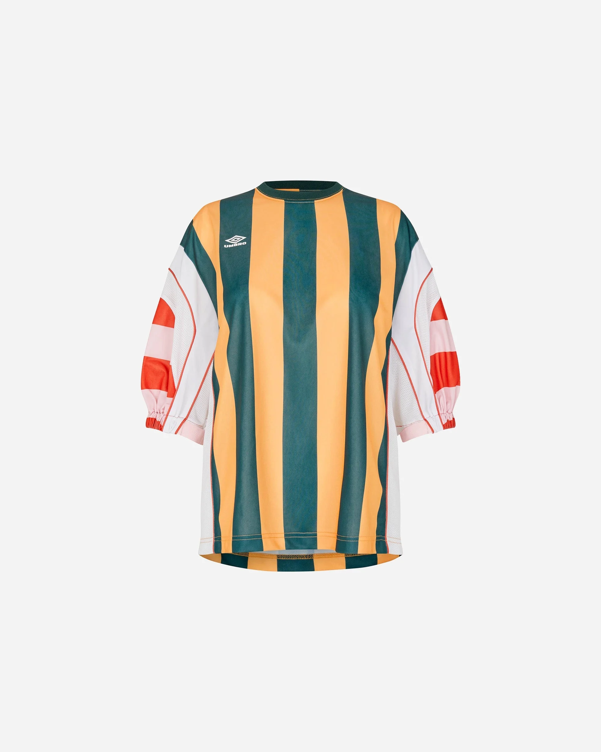 Blending bold energy and sportswear heritage, the Stine Goya x UMBRO Jersey Snap Tee brings a fresh attitude to everyday clothing. As part of the Jersey Snap Tee family, this piece captures the spirit of collaboration, elevating your rotation with a vibrant multi stripes design. Lightweight and comfortable, it's built for all-day wear, whether layered with relaxed streetwear or paired with your favorite footwear. The signature snap button closure makes for easy styling, while the playful color palette nods to sneakers culture’s appreciation for standout details. Discover the Stine Goya x UMBRO Jersey Snap Tee at NAKED Copenhagen—a unique staple for anyone seeking expressive, fashion-forward clothing. Size & Fit: The model is 1.65 m and is wearing size XS Sizing: WOMENS Article Number: SG-EX25-T089-2426 Product color: Multi Stripes