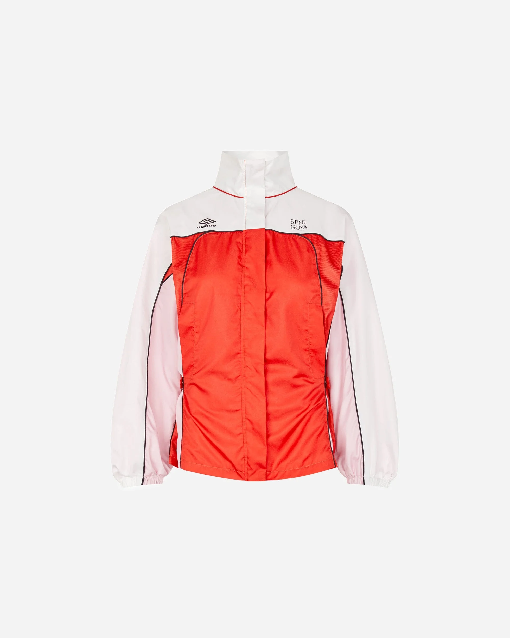 The Stine Goya x UMBRO Windbreaker Jacket brings a creative edge to the windbreaker jacket family, blending sportswear heritage with contemporary design. Offered in a distinctive poinciana hue, this collaboration stands out with subtle branding and a lightweight, functional build—ideal for layering on breezy days or styling with your favorite sneakers. Thoughtfully constructed for comfort and movement, it offers practical details like a full zip, adjustable hood, and secure pockets, making it suitable for both city exploration and casual outings. A natural fit for those invested in sneaker culture, this piece underscores NAKED Copenhagen’s commitment to versatile clothing that shifts seamlessly between fashion, function, and the streets. Size & Fit: The model is 1.65 m and is wearing size XS Sizing: WOMENS Article Number: SG-EX25-J054-2428 Product color: Poinciana