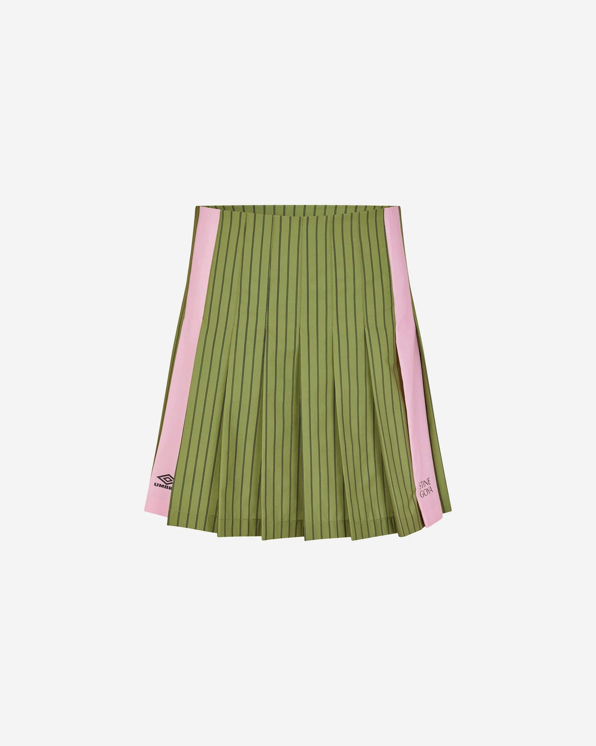 The Stine Goya x UMBRO Windbreaker Pleated Skirt blends athletic heritage with modern style, perfect for sneaker culture enthusiasts. As part of the Windbreaker Pleated Skirt family, this standout piece showcases a playful mix of green stripes and subtle pink, bringing a fresh twist to classic sportswear. Constructed from lightweight materials, it offers comfort and mobility—whether paired with standout footwear or styled for everyday streetwear. With its pleated design, the skirt nods to both archival UMBRO sport aesthetics and contemporary Scandinavian fashion by STINE GOYA. Elevate your rotation with this versatile skirt from NAKED Copenhagen, tailored for those who appreciate the intersection of sneakers, culture, and innovative design. Size & Fit: The model is 1.65 m and is wearing size S Sizing: WOMENS Article Number: SG-EX25-SK013-24282428 Product color: Green Stripes / Pink
