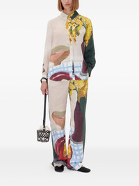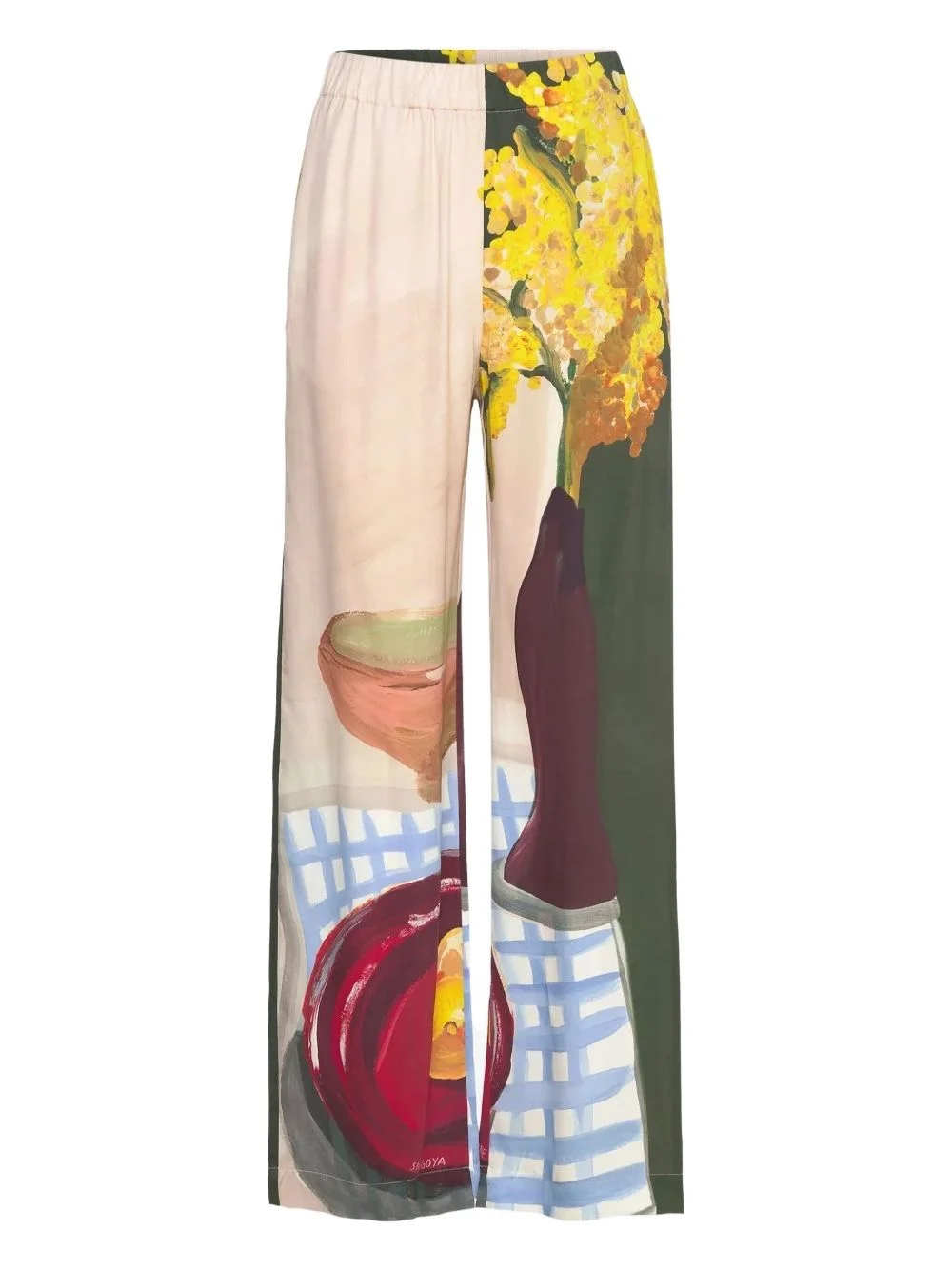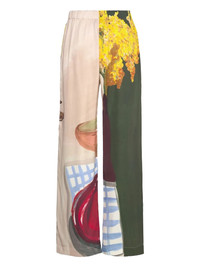 floral-print panelled palazzo pants Highlights - Off-white - Floral print - Dark-green panel - Fruit motif Imported Composition TENCEL™ Lyocell (LENZING) 54%, Viscose 46% Washing instructions Read Manufacturer Guidelines