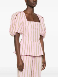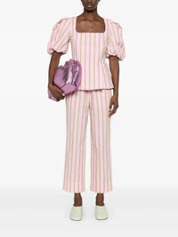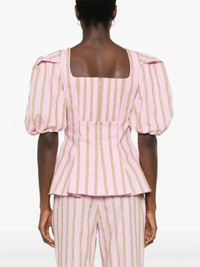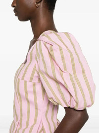 rose pink concealed rear hook and zip fastening smocked panel pleat detailing elasticated cuffs Size & Fit Model Measurements: Height: 1.77 m Bust/Chest: 82.0 cm Hips: 89.0 cm Waist: 64.0 cm Model wears size XS Fabric and Care Designer Style ID: SGT055 Designer Colour: WALLPAPER STRIPES Composition: Outer: Organic cotton 100%; Lining: Cotton 100% Washing instructions: Machine Wash