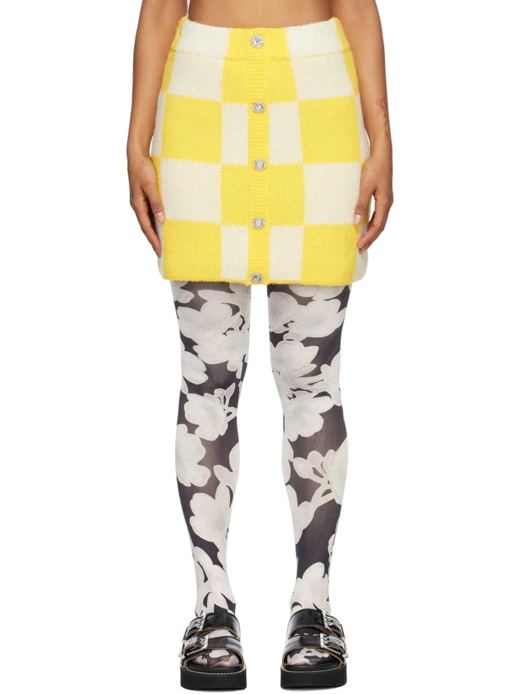 Knit acrylic- and alpaca-blend skirt. Check pattern throughout. · High-rise · Rib knit waistband · Mock button closure · Crystal-cut hardware Supplier color: Sunrise check 45% acrylic, 35% polyamide, 20% alpaca. Made in Italy 231905F090003