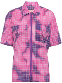 bleached-effect zip-up shirt Highlights - Pink - Cotton blend - Bleached effect - Classic collar - Short sleeves - Front zip fastening - Straight hem Imported Composition Cotton 93%, Polyester 7%