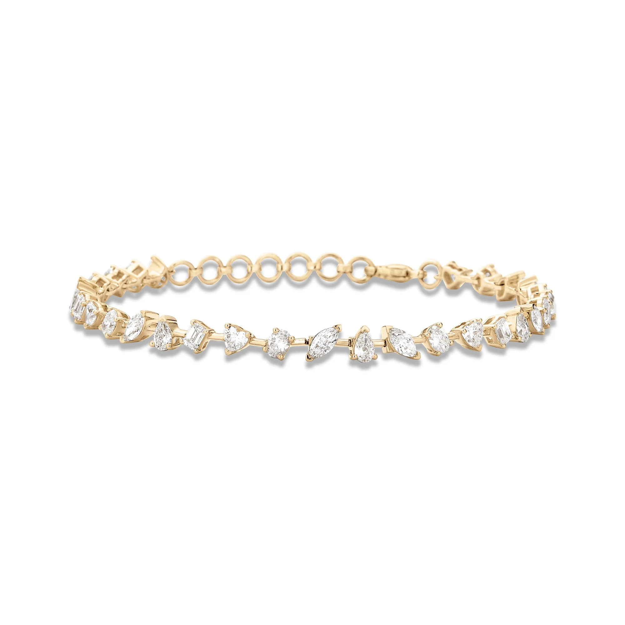 - Heart-cut - LAB-created white diamonds - Pear-cut - Marquise-cut - Trigger clasp - Oval-cut - Emerald-cut Stones Total Weight (CTW): 3.11ct (approx) Color: EF Clarity: VS Metals Metal Type: Gold Metal Color: Yellow Gold Metal Finish: High Polish Gold Karat: 14K Dimensions Width: 4.5mm Length: 6" - 7" Adjustable Additional Information Not all sparkle is equal. Our lab-grown diamond jewelry is made sustainably, without the need for traditional mining. As prices fluctuate and the market shifts, lab-grown diamonds offer the best value. Our lab-grown styles are also made using recycled gold, helping to minimize waste created through the production process. We offer quality without complication with jewelry that doesn't just look good — you can feel good about wearing it.