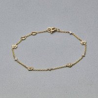 - Hand selected natural white diamonds - All carat weights are approximate - Ethically sourced materials and conflict-free diamonds - Fully compliant with The Kimberley Process Stones Total Weight (CTW): 0.16ct (approx) Stone Type: Natural White Diamonds Color: GH Clarity: SI Metals Metal Type: Gold Metal Color: Yellow Gold Metal Finish: High Polish Gold Karat: 14K Dimensions Cable Chain Thickness: 1.2mm Adjustable Chain Length: 6"-7" Additional Information It's hard to resist the sparkly spread of pave diamonds, nestled together side by side. Our pieces are hand-set under a microscope, meaning that even the smallest details get our full attention. Every diamond counts. Still, our ultimate goal when making jewelry is to give you the best value, which means conflict-free diamonds and solid gold, and a price that is fair. We believe that you can't ever go wrong with more sparkle, so we do our best to give you everything you deserve.