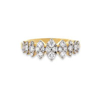- Ethically sourced materials and conflict free diamonds - Hand selected full cut natural white round diamonds - Fully compliant with The Kimberley Process - All carat weights are approximate Stones Total Weight (CTW): 0.70ct (approx) Stone Type: Natural White Diamonds Color: H/I Clarity: I1-I2 Metals Metal Type: Gold (with white rhodium plating) Metal Color: Yellow Gold Metal Finish: High Polish Gold Karat: 14K Dimensions Ring Width: 2.8mm - 7.4mm Additional Information It's hard to resist the sparkly spread of pave diamonds, nestled together side by side. Our pieces are hand-set under a microscope, meaning that even the smallest details get our full attention. Every diamond counts. Still, our ultimate goal when making jewelry is to give you the best value, which means conflict-free diamonds and solid gold, and a price that is fair. We believe that you can't ever go wrong with more sparkle, so we do our best to give you everything you deserve.