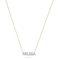 - Spring ring clasp closure - Enter chosen name in the Personalization box. - Fully compliant with The Kimberley Process - All carat weights are approximate - Hand selected natural white diamonds - Ethically sourced materials and conflict-free diamonds - One name only. Spaces cannot be included. Stones Total Weight (CTW): 0.3ct - 0.4ct (approx) Stone Type: Natural White Diamonds Color: HI Clarity: I2 Metals Metal Type: Gold Metal Color: Yellow Gold Metal Finish: High Polish Gold Karat: 14K with White Rhodium Dimensions Adjustable Chain Length: 16" - 18" Name Height: 7mm Cable Chain Thickness: 1.1mm Additional Information Buying jewelry is a personal experience, and even more so when you're choosing a style that's customized to you. Whether it be including your initials, birthstone, or zodiac sign, investing in a luxurious solid gold or sterling silver piece designed and handcrafted just for you can make a purchase feel even more special. With great quality at the fairest prices, custom styles also make for great gifts as they're chosen specifically with the recipient in mind.