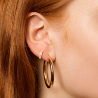 - 10k Solid yellow gold - Handpicked very good cut - Ethically sourced materials and conflict free diamonds - Fully compliant with The Kimberley Process - Diamond color/clarity: GH/SI - Sold as a pair - 12mm exterior diameter - White diamond: 0.26TCW (approx) Additional Information It's hard to resist the sparkly spread of pave diamonds, nestled together side by side. Our pieces are hand-set under a microscope, meaning that even the smallest details get our full attention. Every diamond counts. Still, our ultimate goal when making jewelry is to give you the best value, which means conflict-free diamonds and solid gold, and a price that is fair. We believe that you can't ever go wrong with more sparkle, so we do our best to give you everything you deserve.