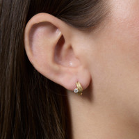 - Fully compliant with The Kimberley Process - All carat weights are approximate - Ethically sourced and sustainable material - Huggie thickness: approx 3.4mm - Diamond clarity: SI2 - Inner diameter: approx 8.1mm - Hand selected natural white diamonds: 0.10CTW (approx) - Diamond color: HI - 14k Solid yellow gold Additional Information Diamond jewelry is forever. That's why we focus on the details and great value when it comes to designing our pieces. You'll find sleek, modern styles with keen attention to balance and proportion — because they can't just look good now, they need to last. Designed in NYC, our jewelry uses 100% ethically-mined diamonds, set in solid gold to ensure no tarnishing or flaking.