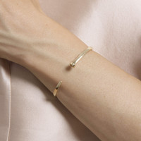 - Hinged opening Metals Metal Type: Gold Metal Color: Yellow Gold Metal Finish: High Polish Gold Karat: 14K Dimensions Cuff Thickness: 3mm Additional Information We're forever fans of solid gold — it's the perfect material for crafting our collection of timeless, everyday jewelry . We focus on creating a range of staples made from materials of the very highest quality - namely 100% solid gold that won't tarnish or flake. And, because it's our goal to always be fair with our pricing, we offer the best value for these never-take-off styles.