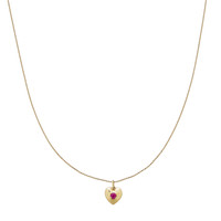- Please note that all stones are unique and colors and shapes will vary slightly - 4mm Round natural-mined ruby - Approx 0.4CTW - Bail dimension: 3x5mm - 10K Solid yellow gold - Adjustable chain length 16"-18" - Heart size: 12x12mm - Spring ring clasp Additional Information Infuse your jewelry collection with a little color. Our gemstone pieces are designed to add a splash of creativity and whimsy to your look. Since we use all-natural gems, each unique stone is cut to the perfect size and shape. Your piece is meant especially for you. As our gemstones are ethically earth-mined and collected only in quantities that we can source, our gemstone designs are always limited edition and handcrafted into something exceptional with the best value.