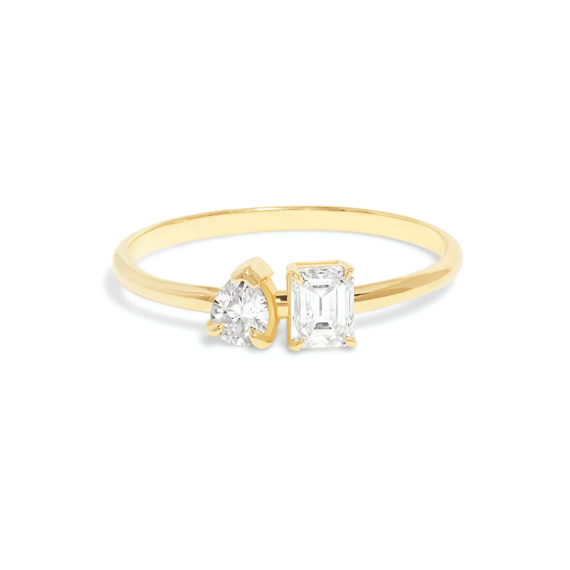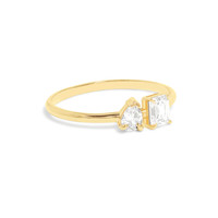 - 14K Solid yellow gold - Recycled gold - White Lab-created Emerald Diamond - Band width: 1.5mm - Quality/Color: EF VS / FG VS2 - Festival size: 8 x 4.7mm - Approx 0.4 CTW - Part of our Rathe™ collection - White Lab-created Pear Diamond