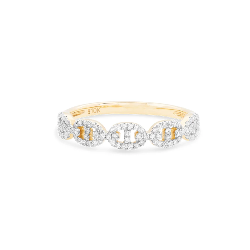 - Handpicked very good cut - Diamond color/clarity: HI/I2 - 10K Solid yellow gold - White rhodium plated - Partially finished with rhodium plating - White diamond: 0.21CTW Additional Information It's hard to resist the sparkly spread of pave diamonds, nestled together side by side. Our pieces are hand-set under a microscope, meaning that even the smallest details get our full attention. Every diamond counts. Still, our ultimate goal when making jewelry is to give you the best value, which means conflict-free diamonds and solid gold, and a price that is fair. We believe that you can't ever go wrong with more sparkle, so we do our best to give you everything you deserve.
