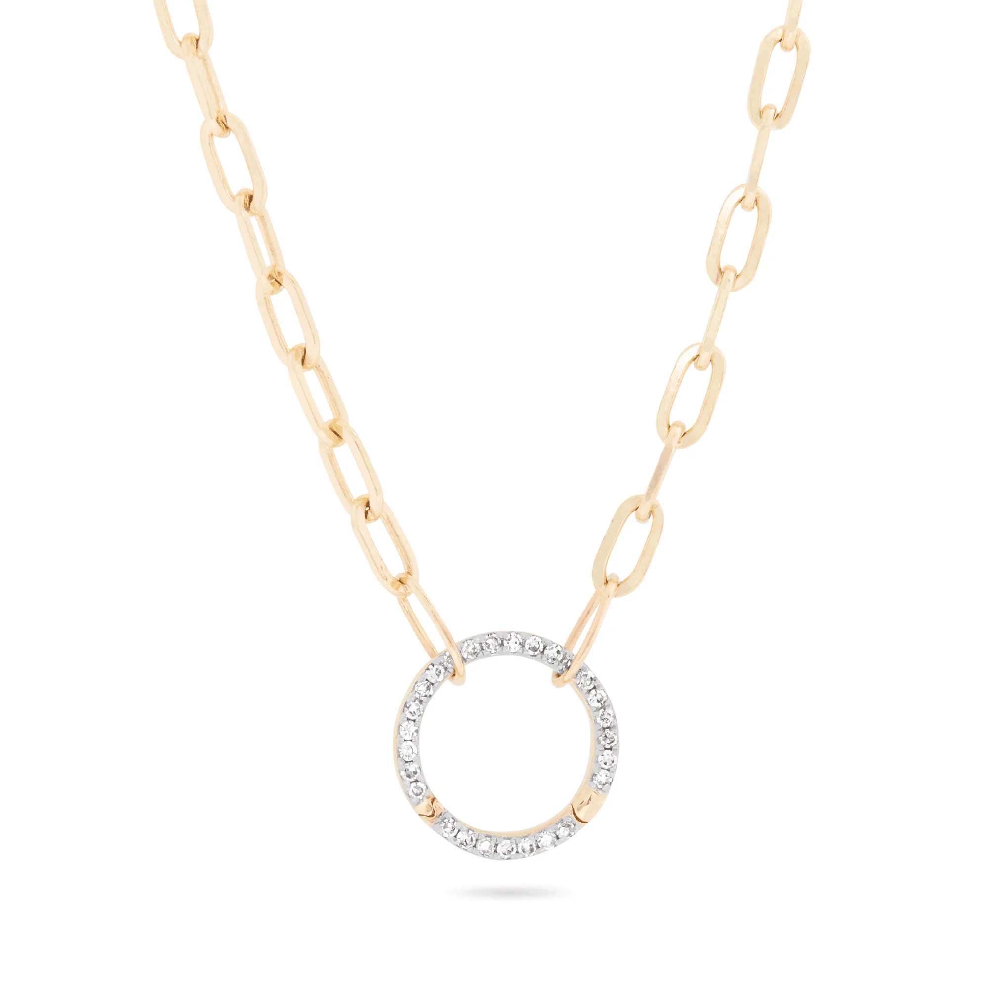 - Handpicked very good cut - Diamond color/clarity: HI/I2 - Chain length: 16" - White diamond: 0.10CTW - 10K Solid yellow gold - Partially finished with rhodium plating Additional Information It's hard to resist the sparkly spread of pave diamonds, nestled together side by side. Our pieces are hand-set under a microscope, meaning that even the smallest details get our full attention. Every diamond counts. Still, our ultimate goal when making jewelry is to give you the best value, which means conflict-free diamonds and solid gold, and a price that is fair. We believe that you can't ever go wrong with more sparkle, so we do our best to give you everything you deserve.
