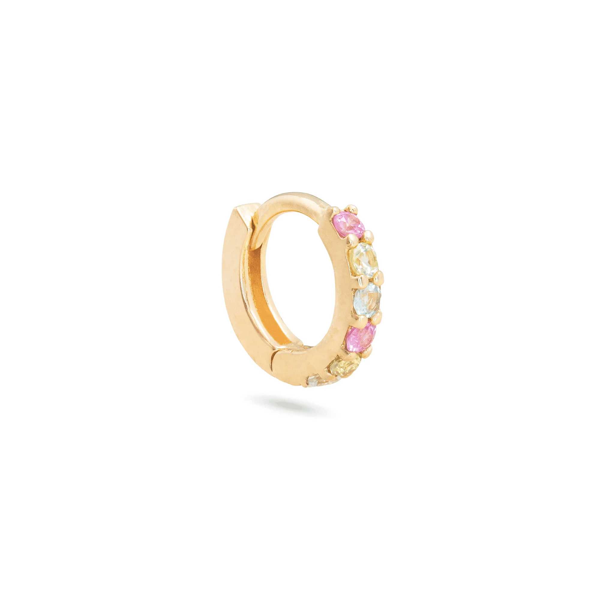 - Please note that every earring is unique and stone colors will vary slightly - 9mm Diameter - Handpicked multicolored gemstones - 14k solid yellow gold - Sold as a single earring Additional Information Infuse your jewelry collection with a little color. Our gemstone pieces are designed to add a splash of creativity and whimsy to your look. Since we use all-natural gems, each unique stone is cut to the perfect size and shape. Your piece is meant especially for you. As our gemstones are ethically earth-mined and collected only in quantities that we can source, our gemstone designs are always limited edition and handcrafted into something exceptional with the best value.