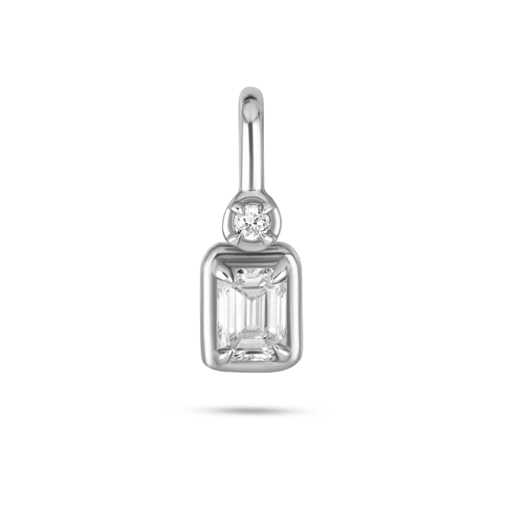 - White Lab-Created round diamond - White Lab-Created emerald diamond - Charm size: 4.5mm x 8mm - EF-VS2 - Rhodium plated - Wear it with: Maritime Anchor Chain Necklace, White Gold Chain Necklace, White Gold Choker & White Gold Tiny Curb Chain Choker Necklace - Sterling silver - Bail inner dimension: 2mm x 5mm - Approx 0.28CTW Additional Information Jewelry should be an extension of your personality, which is one-of-a-kind. Our collection of charms allows you to make your jewelry feel even more special with little touches of sparkle and without breaking the bank. From delicate diamonds to bold and colorful gemstones, each charm is designed and handcrafted to the highest standards of quality and craftsmanship.