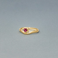 - Please note that all stones are unique and colors and shapes will vary slightly - Pink topaz: 4mm faceted heart - Band width: 2.4mm - 10K Solid yellow gold Additional Information Infuse your jewelry collection with a little color. Our gemstone pieces are designed to add a splash of creativity and whimsy to your look. Since we use all-natural gems, each unique stone is cut to the perfect size and shape. Your piece is meant especially for you. As our gemstones are ethically earth-mined and collected only in quantities that we can source, our gemstone designs are always limited edition and handcrafted into something exceptional with the best value.