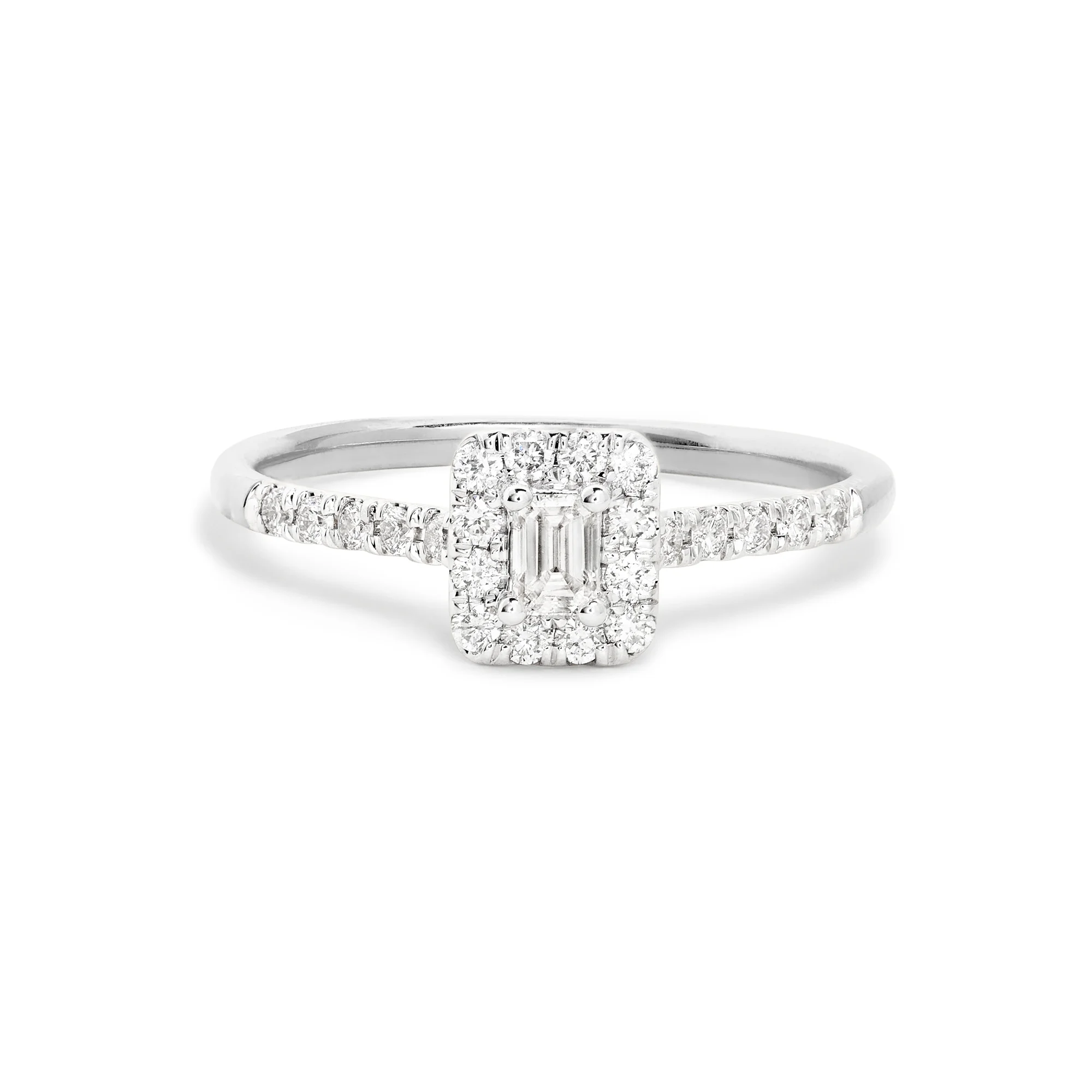 - Sparkles brilliantly with our proprietary Perianth™ Jewelry Setting - Handpicked full cut natural diamonds - Fully compliant with The Kimberley Process - Ethically sourced materials and conflict free diamonds Stones Total Weight (CTW): 0.400CTW (approx) Center Stone: 0.150CTW (approx) Color: HI Clarity: SI2-I1 Metals Metal Type: Gold Metal Color: White Gold Metal Finish: High Polish Gold Karat: 14K Rhodium Plating: Yes: Diamond area Dimensions Ring Face Measurement: 6.2mm Band Width: 1.5mm Additional Information Finally, the ring you've always dreamed about. Our engagement rings marry the modern and traditional, taking cues from heirloom shapes and updated with modern design touches. Our signature Perianth™Jewelry Setting enhances the sparkle of our engagement rings, delivering extra sparkly looks without extra cost. Whether you've always dreamed of a vintage-inspired ring, or something more modern, our timeless designs are meant to last a lifetime. Each ring is crafted with conflict-free diamonds and set in 14K solid gold or platinum. Diamond carat weights are approximate.