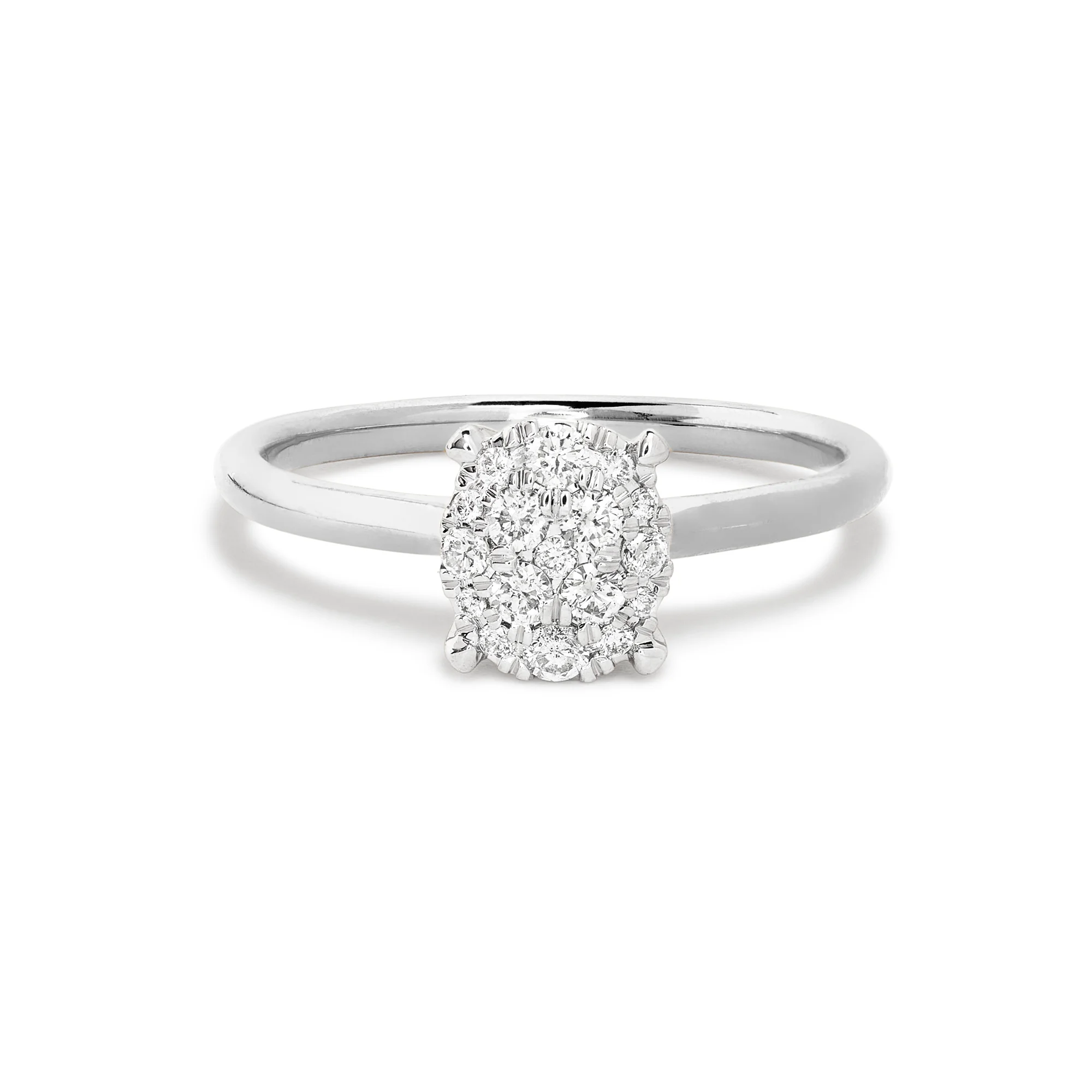 - Fully compliant with The Kimberley Process - Sparkles brilliantly with our proprietary Perianth™ Jewelry Setting - Ethically sourced materials and conflict free diamonds - Handpicked full cut diamonds Stones Total Weight (CTW): 0.250CTW Center Stone: N/A Color: HI Clarity: SI2-I1 Metals Metal Type: Gold Metal Color: White Gold Metal Finish: High Polish Gold Karat: 14K Rhodium Plating: Yes: Diamond area Dimensions Ring Face Measurement: 6.6mm x 7.7mm Band Width: 1.5mm Additional Information Finally, the ring you've always dreamed about. Our engagement rings marry the modern and traditional, taking cues from heirloom shapes and updated with modern design touches. Our signature Perianth™Jewelry Setting enhances the sparkle of our engagement rings, delivering extra sparkly looks without extra cost. Whether you've always dreamed of a vintage-inspired ring, or something more modern, our timeless designs are meant to last a lifetime. Each ring is crafted with conflict-free diamonds and set in 14K solid gold or platinum. Diamond carat weights are approximate.