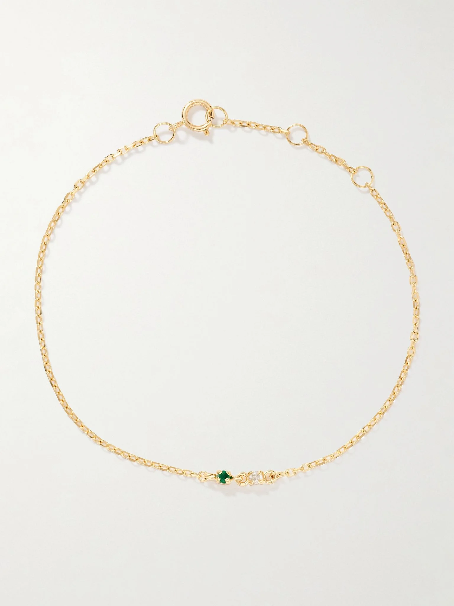 Tiny Green Goddess 14-karat gold, emerald and diamond bracelet Gold