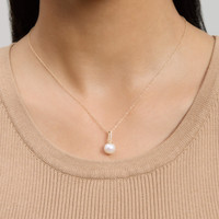 - 14K Solid yellow gold - White diamond: 0.03TCW - 8.5mm Round freshwater cultured white pearls - Chain length: 16" - Aprrox 7mm charm length - Partially finished with rhodium plating Additional Information These aren't your grandmother's pearls. We're finding new ways to reimagine this classic gem for the modern woman. At our NYC headquarters, we're designing new jewelry styles that touch on the latest trends, while still being completely timeless and fairly-priced. Since quality is always top of mind, we use only freshwater-cultured pearls, set in gold that won't tarnish or flake. While they may not be an heirloom yet, they'll be something that you can pass down to the next generations.