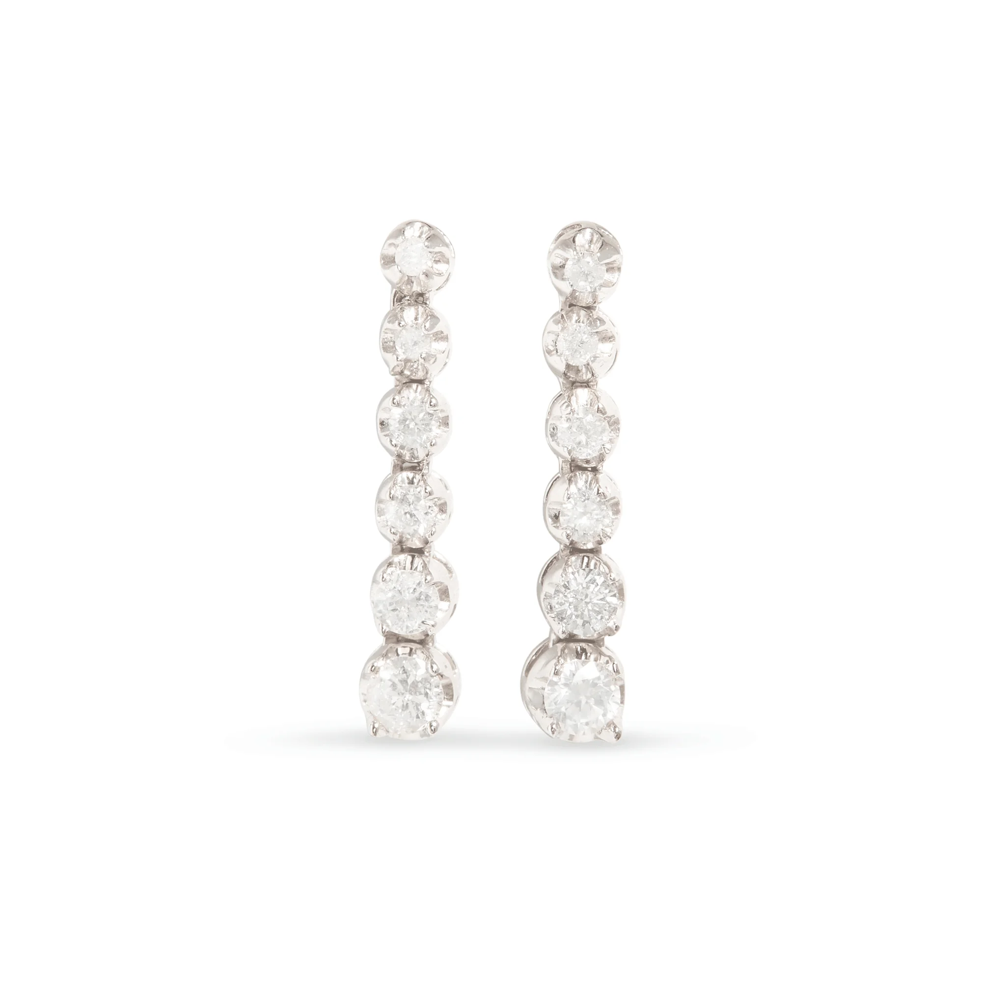 - Diamond color/clarity: HI/I2 - Fully compliant with The Kimberly Process - White diamond: Approx 0.5ct (for the pair) - Handpicked very good cut - Sold as a pair - Earring drop: Approx 22mm - 10K Solid white gold - Ethically sourced materials and conflict free diamonds Additional Information Diamond jewelry is forever. That's why we focus on the details and great value when it comes to designing our pieces. You'll find sleek, modern styles with keen attention to balance and proportion — because they can't just look good now, they need to last. Designed in NYC, our jewelry uses 100% ethically-mined diamonds, set in solid gold to ensure no tarnishing or flaking.