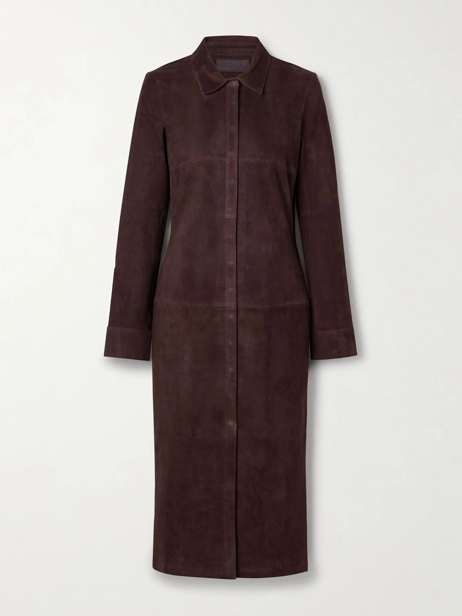 STOULS' collections are rooted in innovative fabrics and timeless designs, resulting chic, practical pieces like this 'Becky' dress. It's cut from panels of the brand's signature suede, which is loved for its comfortable, stretchy feel and smooth jersey lining. Size & Fit - Fits true to size, take your normal size - Intended for a slim fit - Supple, slightly stretchy suede - Model is 177cm/ 5'10" and is wearing a size Small Model measurements: - Bust: 81cm/ 31.75" - Waist: 63cm/ 24.75" - Hip: 91cm/ 36" Details & Care - Dark-brown suede - Concealed button fastenings through front - 100% leather (Lamb); lining: 97% cotton, 2.4% Lyocell, 0.6% elastane - Fully lined - Specialist clean - Designer color: Castor