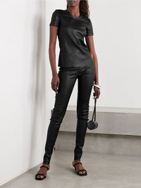 STOULS' 'Carolyn' leggings are one of founder Aurelia Stouls' personal favorite pieces - she recommends styling them with the brand's 'Cherry' tank, which you can also find in our edit. Cut from machine-washable leather, they have a touch of stretch for comfort and come with a bottle of maintenance wax to preserve their shine. Large to size. See Size & Fit notes. Size & Fit - Fits large to size, take one size smaller than normal - High-rise leggings - Supple, slightly stretchy leather - Model is 175cm/ 5'9" and is wearing a size XSmall Details & Care - Black leather - Pull on - 100% leather (Lamb); lining: 97% cotton, 2.4% Lyocell, 0.6% elastane - Machine wash or specialist clean