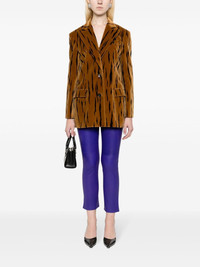 cropped leather trousers Highlights - Dark purple - Stretch-cotton - Elasticated waistband - High-waisted - Cropped leg - Slim cut - Straight hem Imported Composition Outer: Calf Leather 100% Lining: Cotton 97%, Lyocell 2%, Elastane 1% SIZE & FIT Model measurements Height 5 ft 10 in(1.78 m) Bust/Chest 30.7 in(78 cm) Hips 36.61 in(93 cm) Waist 24.8 in(63 cm) FittingInformation Designed for a close fit throughout The elasticated waist allows for a comfortable fit Soft leather has a supple and smooth construction offering some flexibility This piece fits true to size – take your usual size Washing instructions Specialist Cleaning