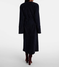 The Dietrich coat from Stouls is made from supple and stretchy suede, a signature material that's celebrated for its premium quality and machine-washable properties. This design showcases a minimalist silhouette and cinches at the waist with a detachable fabric belt. Product Details - Material: 100% lamb leather (suede) - Care instructions: specialist clean - Made in Portugal - Designer color name: Notte - Item color: blue - Material II: 97% cotton, 2.4% lyocell, 0.6% elastane - Lining: 100% viscose - Closure: snap-buttoned front - Pockets: side slit pockets - Self-tie belt - Includes: garment bag - Item number: P01073618 Size & Fit - True to size - For a closer fit, we recommend taking one size down - Shoulder pad inserts - Loose fit, comes with belt - Non-stretchy fabric - slit length 45,0cm-17.5" - The model seen in the picture is 178cm-5'10" and wearing a size XS